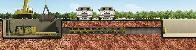 La perforación se puede realizar horizontalmente en diferentes tipos de suelos (arenosos, arcillosos, canto rodados y roca) utilizando una cabeza de corte giratorio, mientras que la fuerza de hinca la proporcionan unos cilindros de empuje hidráulico. La tubería de acero y las secciones del Sin Fin se van añadiendo a medida que la máquina avanza. Los escombros se evacuan del Tornillo Sin Fin a través de la tubería y son conducidos hasta el inicio de la perforación.