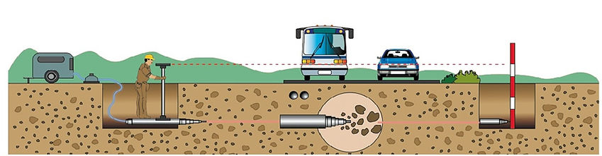 ​Los martillos neumáticos cilíndricos o topos, son equipos que compactan el suelo al desplazarlo radialmente, lo que permite dejar una cavidad circular o túnel a lo largo de la trayectoria en la cual se instala posteriormente el tubo requerido. Este método puede ser empleado en suelos compactables como: arcillas, limos, arenas o mezclas.